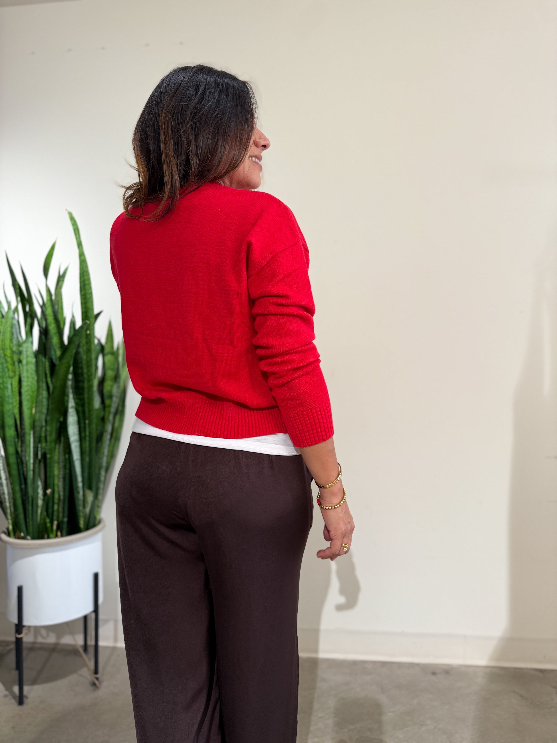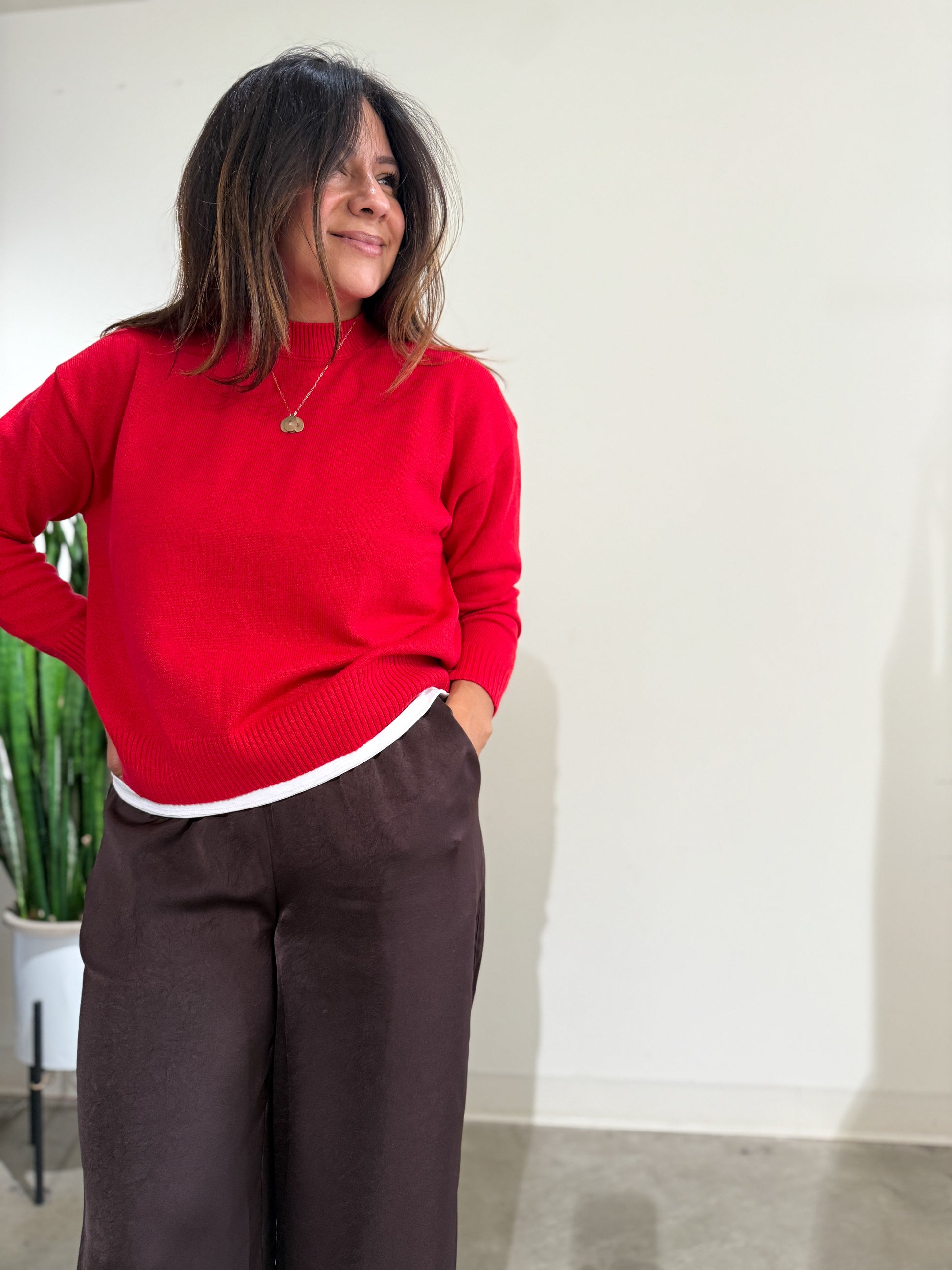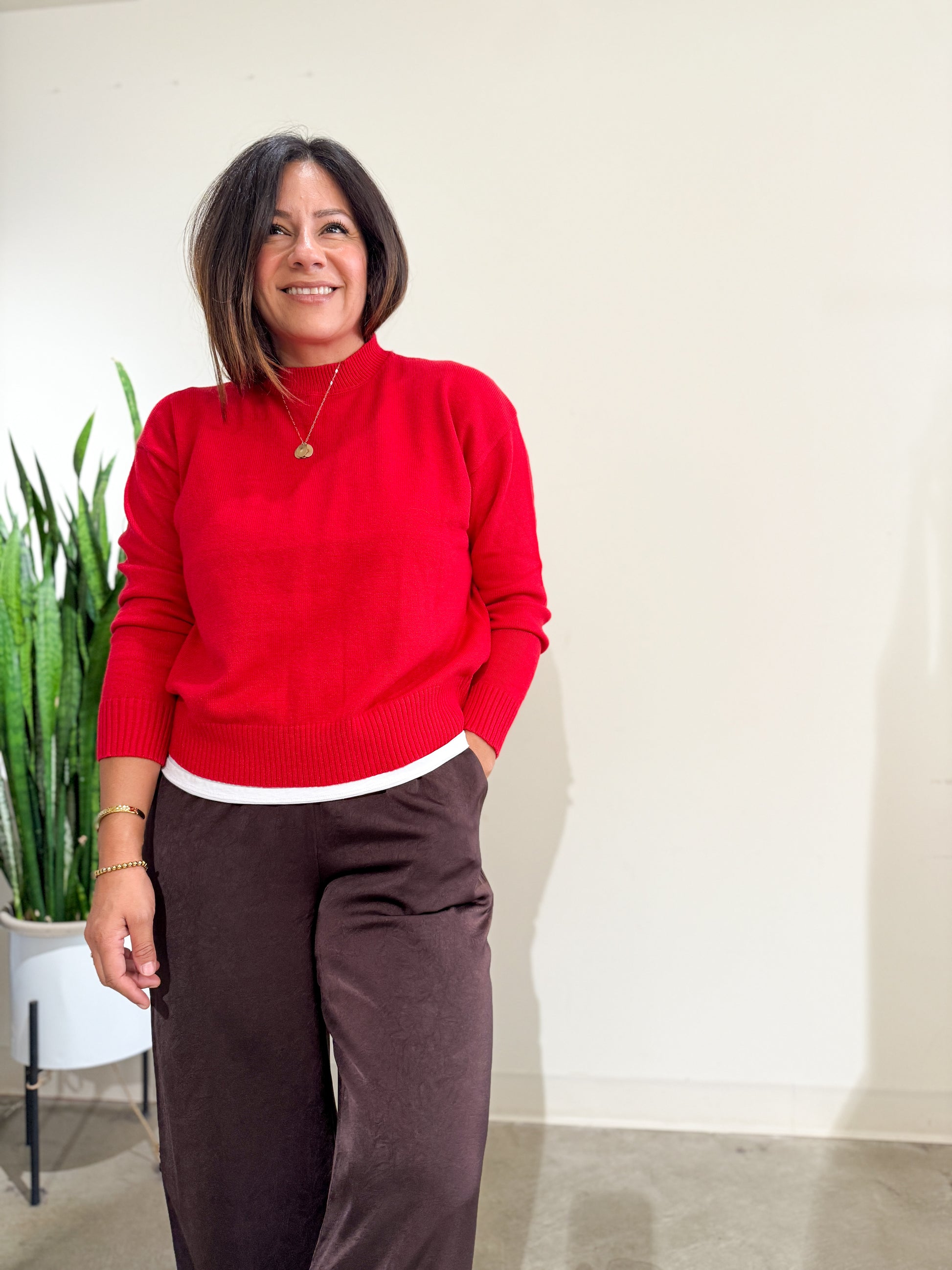 Monica is wearing a small