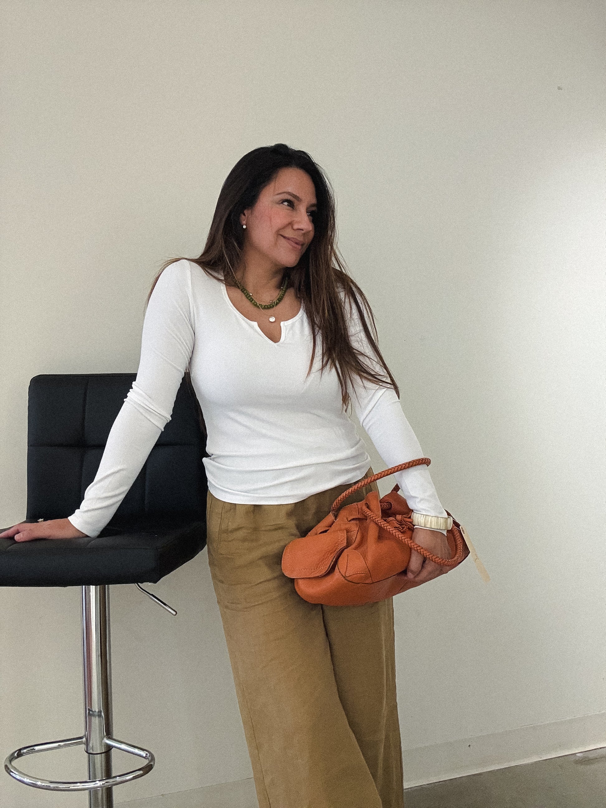 Monica wears a Medium